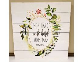 - "Mom Hard, Wife Hard, Work Hard" 18" x 18" sign