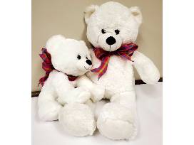 These polar bears are dueling for your heart! These fluffy white bears are decked out in matching bows just waiting to keep your child cozy.