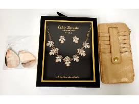 - Wallet, earrings, and cubic zirconia earrings and necklace