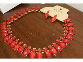 1A gold-tone necklace and earring set with red insets will have you looking like the Queen/King you were meant to be!