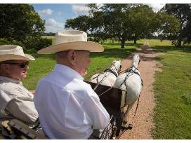 A truly priceless experience! Serve as co-coachman alongside Dr. Stewart Morris, Sr. and Stewart Morris, Jr. for carriage driving in the country. Get a personal tour of the historic carriage collection of the Morris family before going on a pleasure drive on the property of the Morris Ranch in Wharton. You and up to two guests will finish up your day with a BBQ lunch in the Carriage House. Time for the experience is at the availability of the Morris Family - preference for spring - and will be coordinated upon notification of the winner.