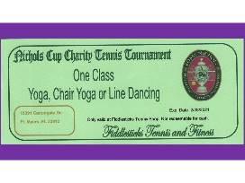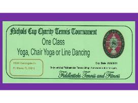 Enjoy 2 classes at the Fiddlesticks Tennis and Fitness Center. You can choose between Yoga, Chair Yoga or Line Dancing. Must be used by 2/28/2021. Saturday Night Silent Auction.