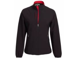 One (1) Women's Full Zip Woven Jacket that is water repellant, wind resistant and provides lightweight warmth. This Caviar Black Jacket with Crimson Red trim creates an elegant and classic look on and off the course.