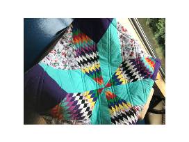 These hand stitched blankets will make a perfect addition to any nursery! Blanket 1 is multi-colored and measures 35 in x 35 in. Blanket 2 features a fun circular pattern and measures 33in x 33 in. Both are reversible and 100% cotton!