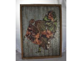 Set of 2 wooden frames with die cutouts of a hen and a gobbler and camoflauge backs.