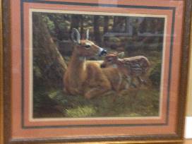 Framed First Spring picture of a mother whitetail deer and her fawn by Home Interiors.