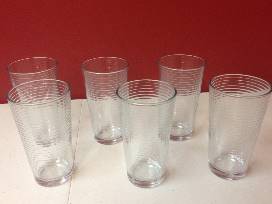 Set of 10 ribbed 17 ounce High Ball durable drinking glasses.