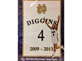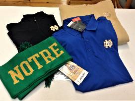 Green ND scarf, blue ND men's polo shirt (XL), gold ND hoodie (XL), black ND 1/4-zip jacket (S), four (4) tickets to the ND Women's Basketball game vs. UNC on Thursday, Feb. 27, and an ABC-57 stadium bag. The tickets are in sec. 10, row 9, seats 11-14 with a great center view of the court. As an added Bonus, you will receive a Skylar Diggins photo.
