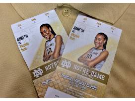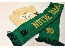 Gold ND polo shirt with a patriotic golden dome crest (XL), a green ND scarf, two (2) tickets to the ND Women's Basketball game vs. Virginia Tech on Thursday, Feb. 20th, and an ABC-57 stadium bag. Wear the engraved metal bracelets to add more Irish spirit in your life.