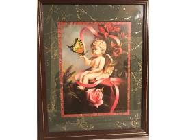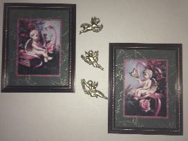 1A pair of 16"x13" Angelic Pictures by artist Di Giacomo from Home Interiors along with 3 accent cherubs.