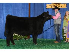 Mother of this heifer was Supreme at Chi Angus Futurity, Reserve Overall female at Junior Nationals and Lousville both Open and Junior shows for Grant. She is equipped with the same kind of matneral cow character as her mother. Double Clean by pedigree. She must be picked up within 9 days of sale. Buyer is responsible for their heifer following the sale. No guarantees are provided. Heifers have been vaccinated with Virashield, 7 way, BANGS, Inforce and have been wormed and poured