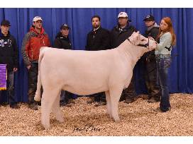 White Chick was purchased from the Bauman family. Wins have been numerous for this female including: Supreme Champion and Champion Charolais Heifer 2013 Saginaw Winter Classic both Ring A & B, Reserve Supreme Champion and Champion Charolas Heifer 2013 Farmers Shoot Out, Champion Charolais heifer and 3rd Overall Kansas Beef Expo Ring A & B, Reserve Division Champion Junior Nationals behind the famous Jo Jo cow.