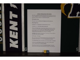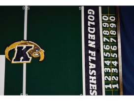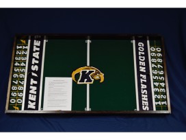 Show your Golden Flashes pride at your next party or tailgate! This custom designed beer die table measures 2' wide X 4' long and features the field turf design at Dix Stadium. Beer die table also includes official rules and a set of Blue & Gold dice. Also included are 4 KSU logo pewter pilsner glasses! Beer die table donated by Paul Krouse, KSU Associate Director, Annual Giving. Pilsner glasses courtesy of Wendell August Forge (www.wendellaugust.com).