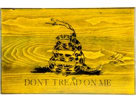 First observed in 1775, the rattlesnake image paired with the "Don't Tread on Me" message became an early symbol of our nation's hunger for freedom from Colonial rule. The Flags of Valor Gadsden flag is designed in honor of the revolutionary spirit of our founding fathers and the citizen soldiers who secured our nation's independence. This 26"L x 16.5"W wooden flag was handmade by combat veterans in Ashburn, Va., and signed by Mark "Oz" Geist, 12-year Marine Corps veteran, member of the Annex Security Team that fought the Battle of Benghazi and co-author of the book "13 Hours." Made in the USA.