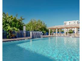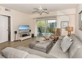 An easy walk to the beach (about 1 block). Beach closet with chairs, beach cart, beach blanket, beach towels, etc. Bedrooms: king bed in master and queen in guest room. Spa tub in master bathroom. Updated linens and leather furniture. Well-stocked kitchen. W/D in unit. Televisions in both bedrooms and large Smart television and DVD in LR. Cable and wireless connections. View from sliders is water pond and fountain. Complex amenities include 2 clubhouses, 2 pools, 2 hot tubs, 2 fitness rooms, tennis and shuffleboard courts, and outdoor grilling facilities. A boardwalk within the complex follows a path along the estuary.