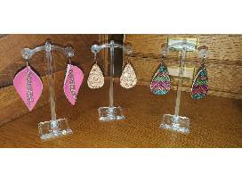 - Geometric pattern of green, pink and blues Gunmetal black ear wire