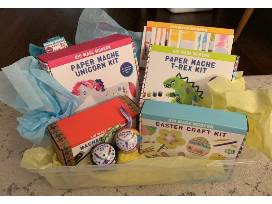 This great basket includes tons of fun crafts for all ages. There are painting crafts, jewelry kits, paper mache kits and more.