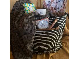 Stella & Dot: Daytripper 2 in 1 Tote ($99), Leopard Scarf ($74), The Stars Align Necklace ($52), LAVISH Ultra Rich Body Butter ($42), Double Quilted Band in Rose Gold/Black ($39), FLASH Power Plumping Lip Gloss in Blush Nude ($29); Invitation to host S&D Girls Only Get Together!