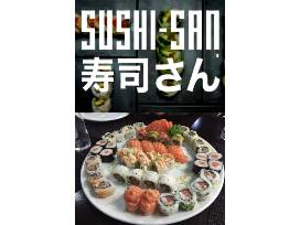 SUSHI-SAN RESTRICTIONS: Valid for one-time use at.Sushi-San for up to $50 off your bill. Valid Sunday through Friday only. Not valid Valentine's Day or New Year's Eve. Not applicable towards tax or gratuity. Cannot be combined with any other promotional offer or certificate. Not valid towards Frequent Diner Club points. Not valid for private parties or events. Not valid for merchandise or gift cards. Not valid for carry-out or delivery.