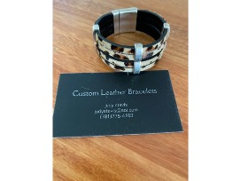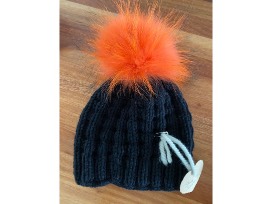 Paired for the ultimate and tasteful display of your TA Pride! Enjoy wearing this black and orange knit hat with pom pom and leopard leather bracelet around town.