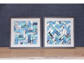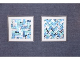 Now THIS is how HNOJ does preschool art! Mrs. Rosenberg's preschoolers each painted two pieces of black paper with metallic watercolors which are arranged, matted and framed in two different, but coordinating 13"x 13" herringbone patterns.