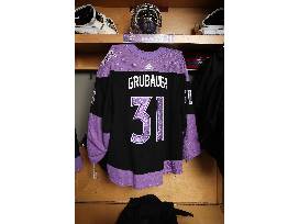 Philipp Grubauer autographed commemorative Colorado Avalanche Hockey Fights Cancer jersey. Size 60G.