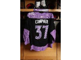 J.T. Compher autographed commemorative Colorado Avalanche Hockey Fights Cancer jersey. Size 56.
