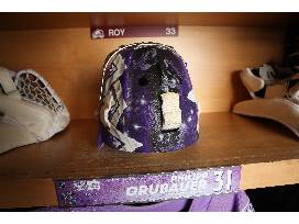 Philipp Grubauer commemorative Colorado Avalanche Hockey Fights Cancer goalie mask. Size 60G.