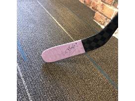 Cale Makar team-issued, autographed, commemorative Hockey Fights Cancer stick.