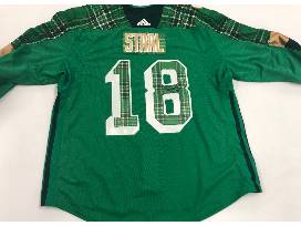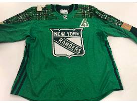 Autographed Marc Staal Commemorative St. Patrick's Day Jersey. The jersey was player issued and is a size 58. The item comes with a cerificate of authenticity.