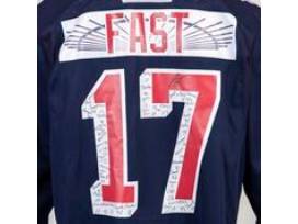 Your package includes a signed Authentic Practice Jersey used by Jesper Fast during warm-ups of the Rangers Opening Night game on October 3 at MSG. The item is a custom, player issued jersey, size 56. The item comes with a certificate of authenticity.