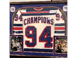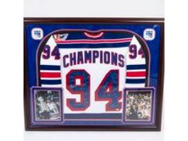 36" X 48" Framed 1994 Rangers Team Signed White '94 Champions' Jersey. There are 19 signatures, including Sam Rosen and John Davidson. The item was donated to Rangers Casino Night by Steiner Sports and comes with a Certificate of Authenticity.