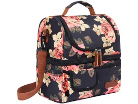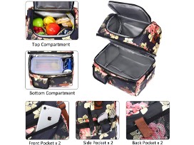 Includes the Double Deck Insulated Lunch Box Large Cooler Tote Bag with Removable Shoulder Strap & Freezable Lunch Bag. Beautiful floral design!