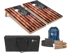 Rustic American Flag Cornhole Boards w/Bean Bags - w/Carrying Case & Corn Hole Bags.