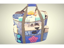 Heavy duty blue mesh beach bag