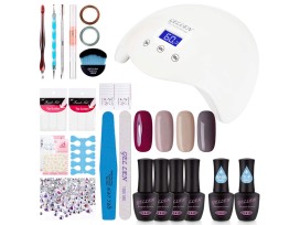 Also comes with twenty-four (24) additional gel nails colors, six (6) buffers, and six (6) nail files.
