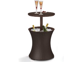 Outdoor Patio Table with 7.5 Gallon Cooler, Espresso Brown.
