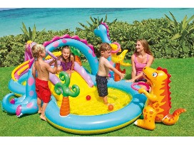 Keep cool with the movable Dino Arch water spray which attaches to a water hose.