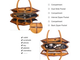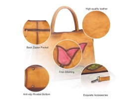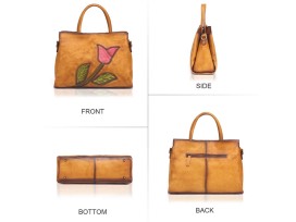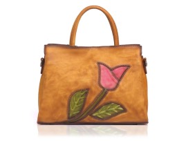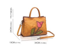 Includes a brown soft leather designer handbag with a beautiful tulip design (as shown). See pictures for dimensions.