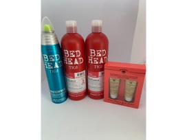 Bed Head Shampoo & Conditioner, Bed Head Hairspray, and Bolero body cream and body scrub gift set.