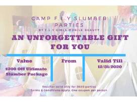 Get $200 off Fly Girls Ultimate Slumber Party Package. Let Fly Girls Mobile Beauty create a full-service slumber party experience that your child and friends will never forget. (see attached PDF for details)