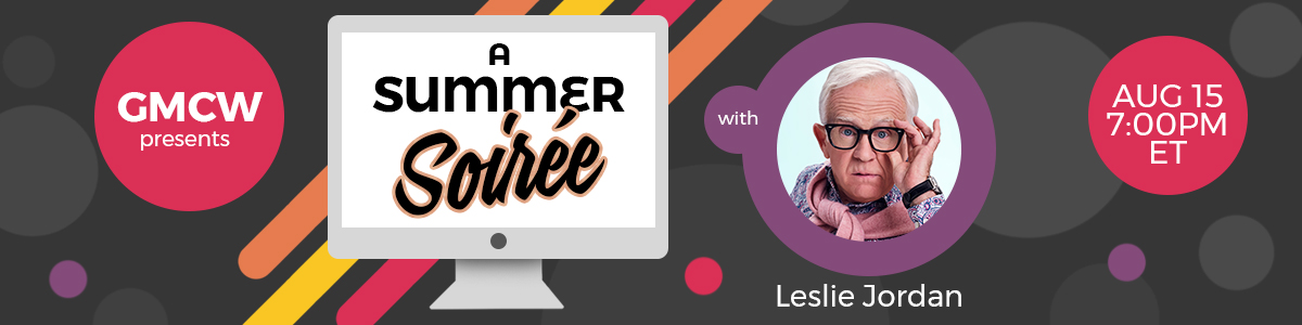 Join us on August 15 at 7:00pm EST as Emmy Award-winner and "Quarantine Queen" Leslie Jordan hosts a special evening for GMCW. There will be virtual performances by GMCW, special guests, a silent auction, and much more.