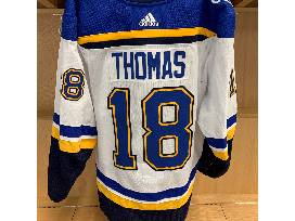 Bid on #18 Robert Thomas's set 1 road jersey from the 2019-20 regular season. This jersey was worn in all road games played in from October 7, 2019 until December 10, 2019. This jersey features the "All-Star patch" on the right shoulder.