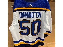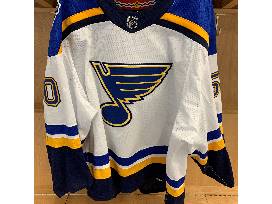 Bid on #50 Jordan Binnington's set 1 road jersey from the 2019-20 regular season. This jersey was worn in all road games played in from October 7, 2019 until December 10, 2019. This jersey features the "All-Star patch" on the right shoulder.