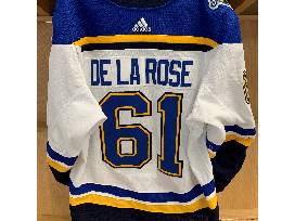 Bid on #61 Jacob de la Rose's set 1 road jersey from the 2019-20 regular season. This jersey was worn in all road games played in from October 7, 2019 until December 10, 2019. This jersey features the "All-Star patch" on the right shoulder.