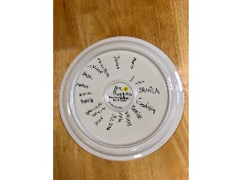 La dolce vita is a borrowed Italian phrase first used in English in the 1960s. La dolce vita literally translates as "the sweet life". For this year's art project we created a pizza platter themed around what a sweet life means to the kids. Ms. Ruggiero's class voted "Happiness". Here is your chance to purchase this priceless piece of art, hand crafted and created by the children themselves. Use it to serve pizza, cheese, or just to display!