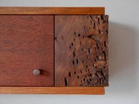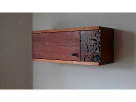 Hand crafted wall cabinet by Eric Cournoyer. 17"x7"x6" walnut and mahogany