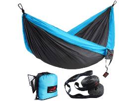 - HONEST OUTFITTERS Double Camping Hammock with Hammock Tree Straps, Portable Parachute Nylon Hammock for Backpacking Travel in Dark Grey & Blue