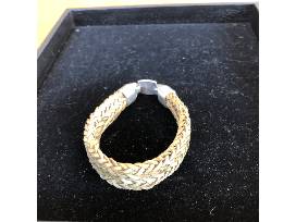 Brass/pearl/leather necklace and woven leather bracelet from Swantiques