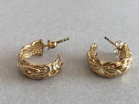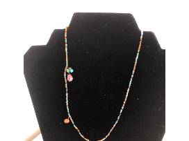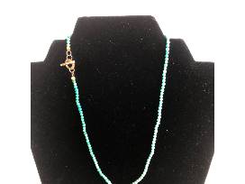 Turquoise bead necklace, glass seed bead necklace, and woven golden hoop earrings from Swantiques